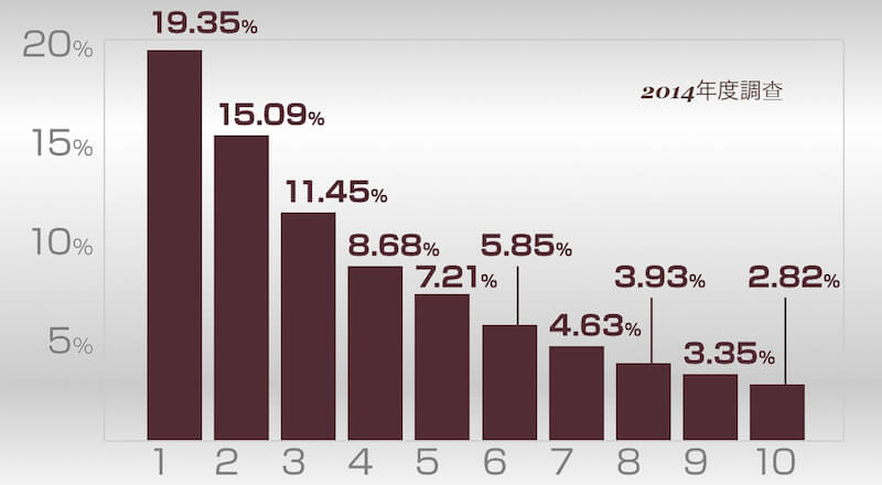 排名第二只剩下10.65%,幾乎是排名第一的一半。