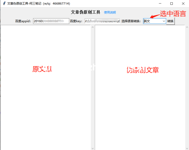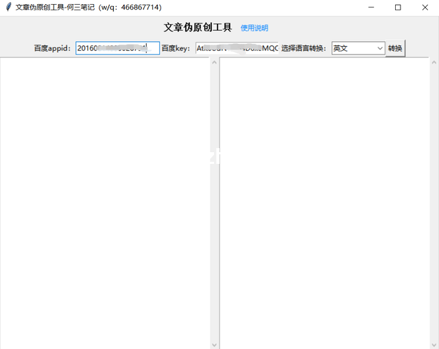 SEO文章偽原創工具需要百度翻譯的appid和key(密鑰)