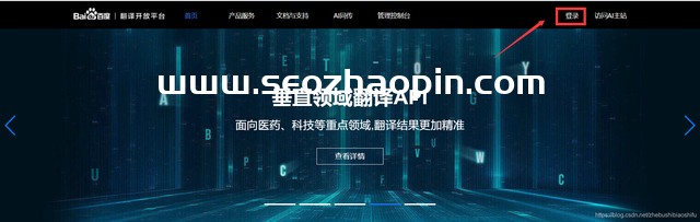 首先,打開百度翻譯開放平臺(https://fanyi-api.baidu.com/),首先點擊右上角進行登錄。