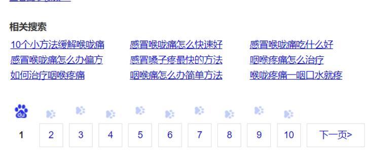 比如:搜索感冒,可以看到下拉推廣中非常多的長尾關鍵詞,在底部相關推薦中也有大量的相關詞,供我們選擇。百度搜索示例圖百度相關搜索截圖
