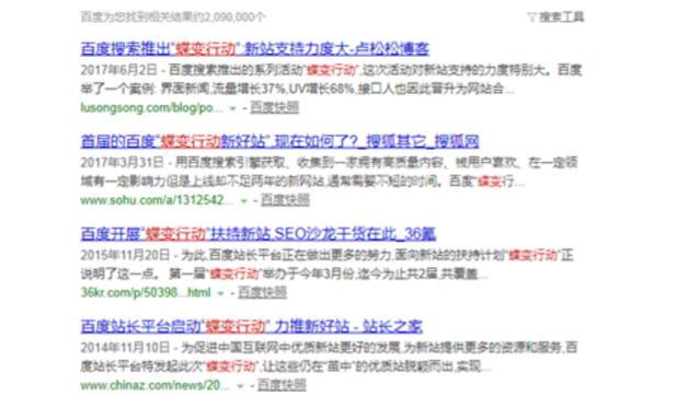 比如說前期百度在線下搞了個(gè)SEO沙龍,其中蝶變行動(dòng)就明確的說到了,會(huì)對(duì)新站有扶持,并且力度還不小,因此我們也可以看到不少的SEOER說自己的站點(diǎn)沒兩三天收錄了,而且還可以查詢到排名了,其實(shí)這類站點(diǎn)就是百度扶持的對(duì)象。