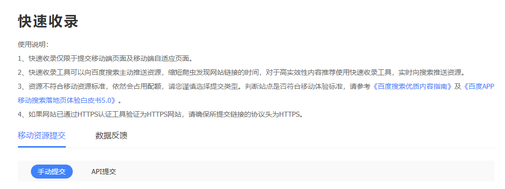 快速收錄工具只適用于移動端網站頁面及自適應網站頁面,可以幫助站長更好的向搜索引擎推送內容資源,對于優質時效性高的內容推薦使用快速收錄工具,實時向百度搜索推送優質內容資源。