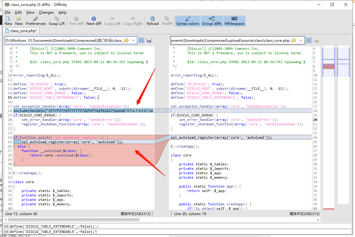 做為網(wǎng)站長(zhǎng)而言,網(wǎng)站經(jīng)常受到惡意攻擊代碼篡改等問(wèn)題,利用Diffinity代碼對(duì)比一下子就知道哪些代碼是后門(mén)篡改過(guò)的了,是不是很方便呢?如圖:發(fā)現(xiàn)網(wǎng)頁(yè)中包含惡意加密代碼