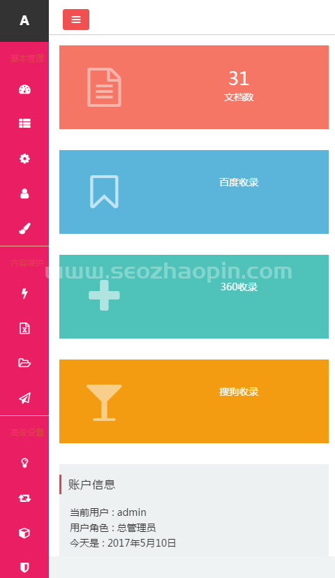 織夢DedeCMS響應(yīng)式后臺(tái)管理系統(tǒng)(UTF8+GBK版本)移動(dòng)端界面如下: