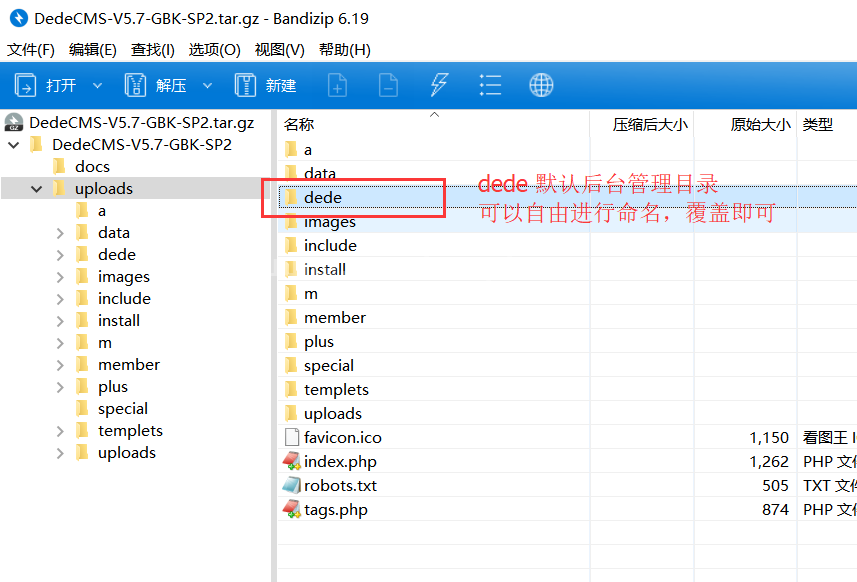 下載解壓后,選擇相應(yīng)的編碼上傳到根目錄中,替換默認(rèn)的dede,或者是重命名一個(gè)設(shè)置的后臺(tái)目錄即可。