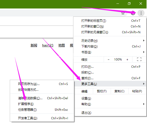 2,打開谷歌瀏覽器,按如下流程打開擴展程序功能設置中心。