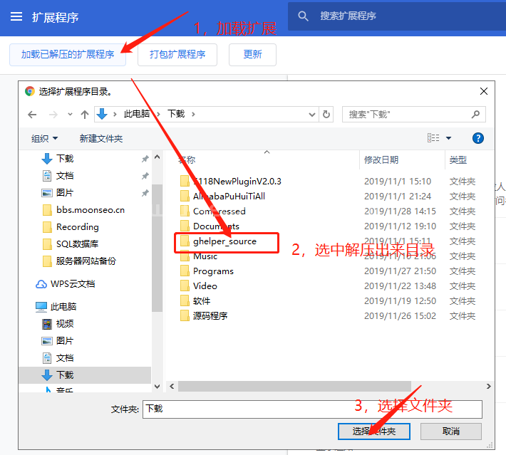 3,按步驟手動指定谷歌助手插件目錄位置,進行加載安裝。