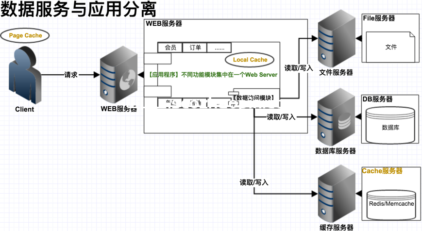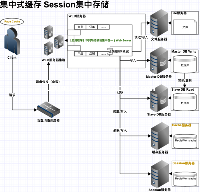 5.如果訪問量持續增加,大量數據被頻繁讀取,相對較少被寫入,這部分數據可以分離出來緩存到專門的服務器,比如Memcache和Redis緩存服務器,可以大大減輕數據庫讀寫的壓力。這是一種非常有效的解壓方法;