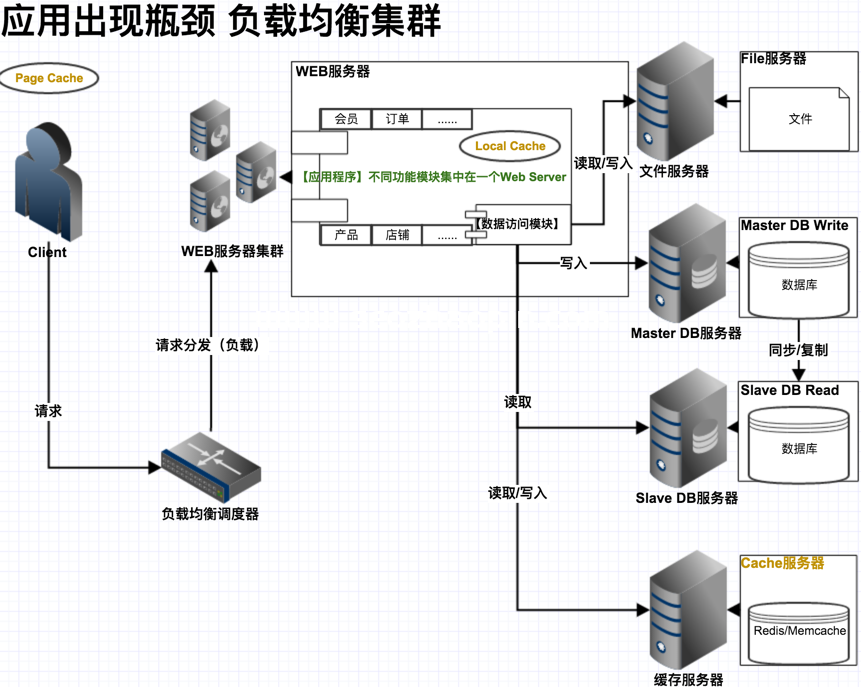 通過集群解決高并發、海量數據問題的常用手段,實現系統的可伸縮性。通過負載均衡調度器,可將用戶訪問分發到集群中的某臺 Server 上,應用服務器的負載壓力不再成為整個網站的瓶頸。