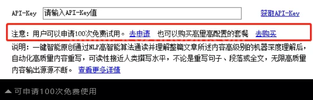當然5118偽原創是要購買付費的,可申請100次免費使用,可購買一鍵智能原創API套餐。5118會員折扣碼 D569F5